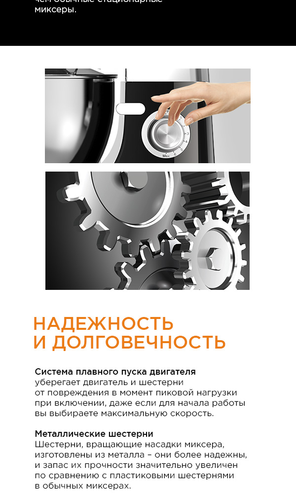 Новый планетарный миксер «3 в 1» REDMOND RFM-5318 с комплектом из 3 насадок позволит вам максимально быстро и эффективно взбить и смешать ингредиенты для самых разных блюд. RFM-5318 – это надежный прибор с усовершенствованной конструкцией. Шестерни миксера REDMOND изготовлены из металла – они отличаются прочностью и обеспечивают более длительную работу миксера по сравнению с пластиковыми шестернями.