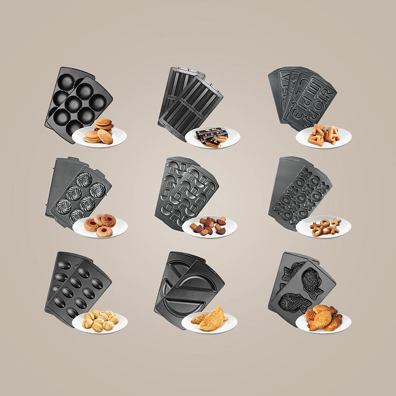 В комплекте к мультипекарю вы найдете 3 набора съемных панелей, которые с легкостью заменят сразу несколько приборов и сэкономят место на кухне: