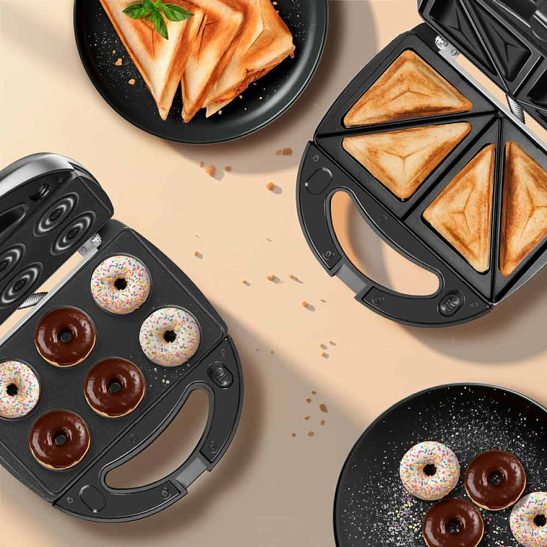 Съемные панели «Пончики» и «Сэндвич» помогут подготовиться как к пикнику, так и к сытному перекусу. Сделайте сладкое ароматное лакомство и те самые треугольные бутерброды с хрустящей корочкой. В восторге будут дети и взрослые.