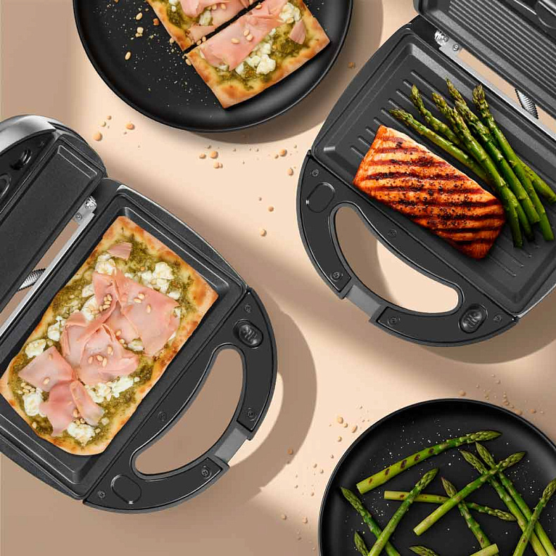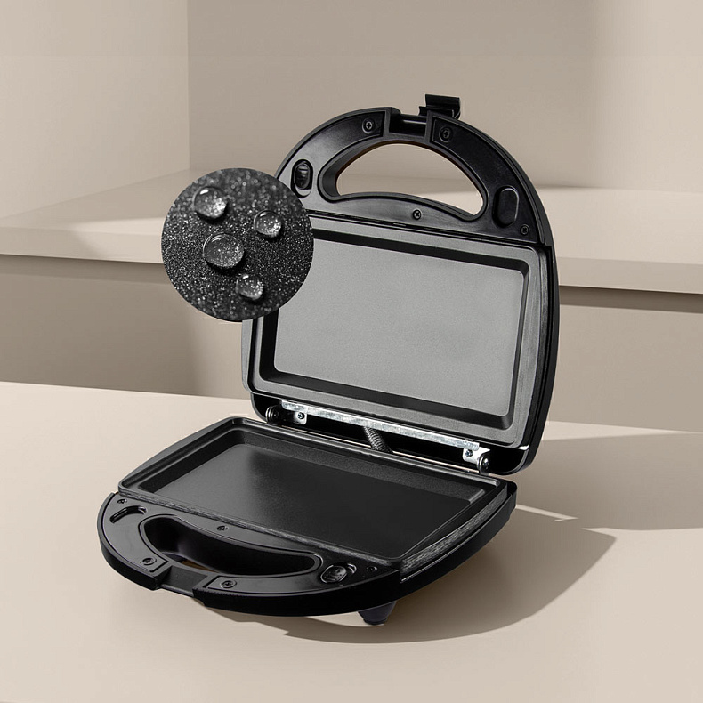 Благодаря антипригарному покрытию готовить любимые блюда становится проще: вафли и сэндвичи не пригорают. После использования панели достаточно протереть губкой с небольшим количеством средства для посуды.