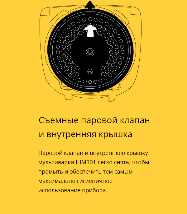 Опыт с индукционной плитой уже есть, решила опробовать современную необычную технологию в мультиварке. Воду нагревает очень быстро, время приготовления сокращается в разы. Верхняя часть в крышке разборная, легко очищается.