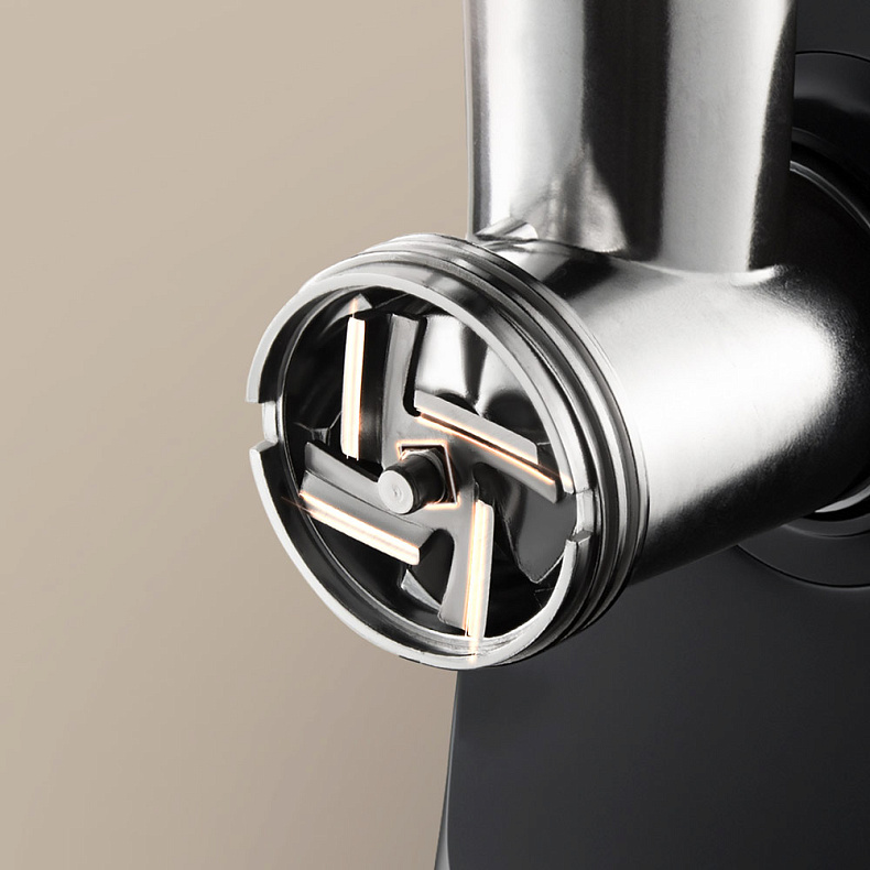 Мясорубка подходит тем, кто готовит в спешке. Благодаря мощности 1800 Вт она легко справляется с любым видом мяса, включая жесткие куски, а высокая производительность 2,2 кг/мин позволяет за несколько минут приготовить фарш на компанию из 5–10 человек или натереть овощи для детского пюре. Вы получаете идеальный результат не только быстро, но и без усилий.