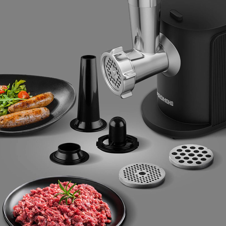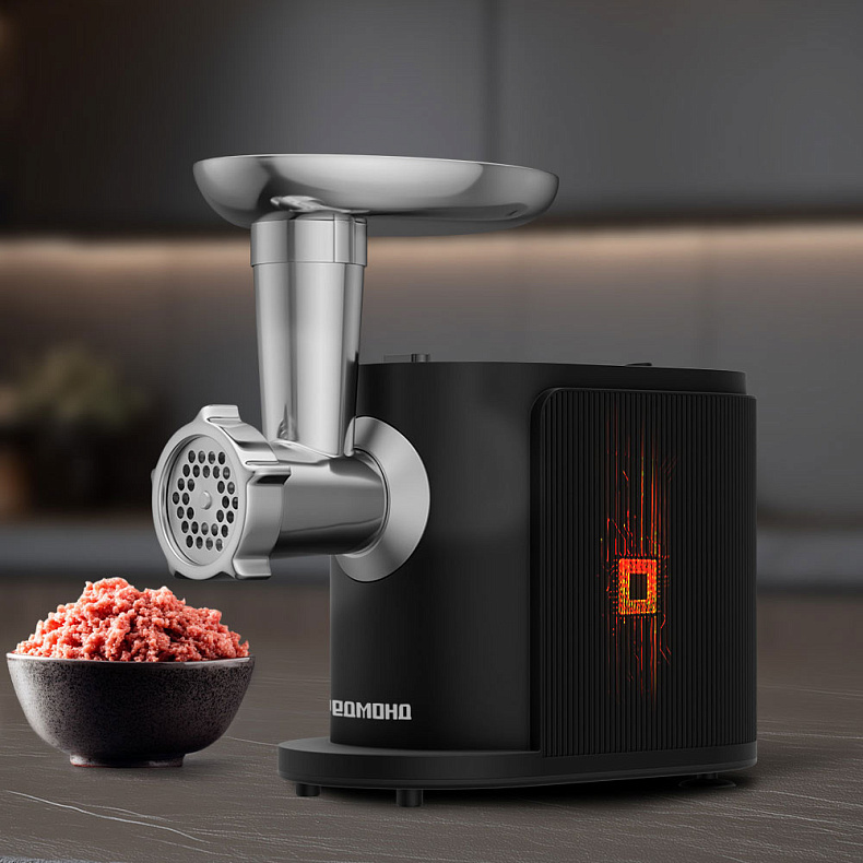 Мы позаботились о вашем спокойствии. Двойная защита двигателя автоматически отключает мясорубку при перегреве и перегрузке. Вы можете не переживать, что мотор сломается при интенсивной работе прибора.