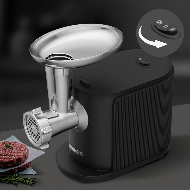Эта функция делает использование мясорубки максимально комфортным. Включите ее при скоплении продуктов в блоке — шнек начнет вращаться в обратную сторону, и вы сможете продолжить обработку продуктов.