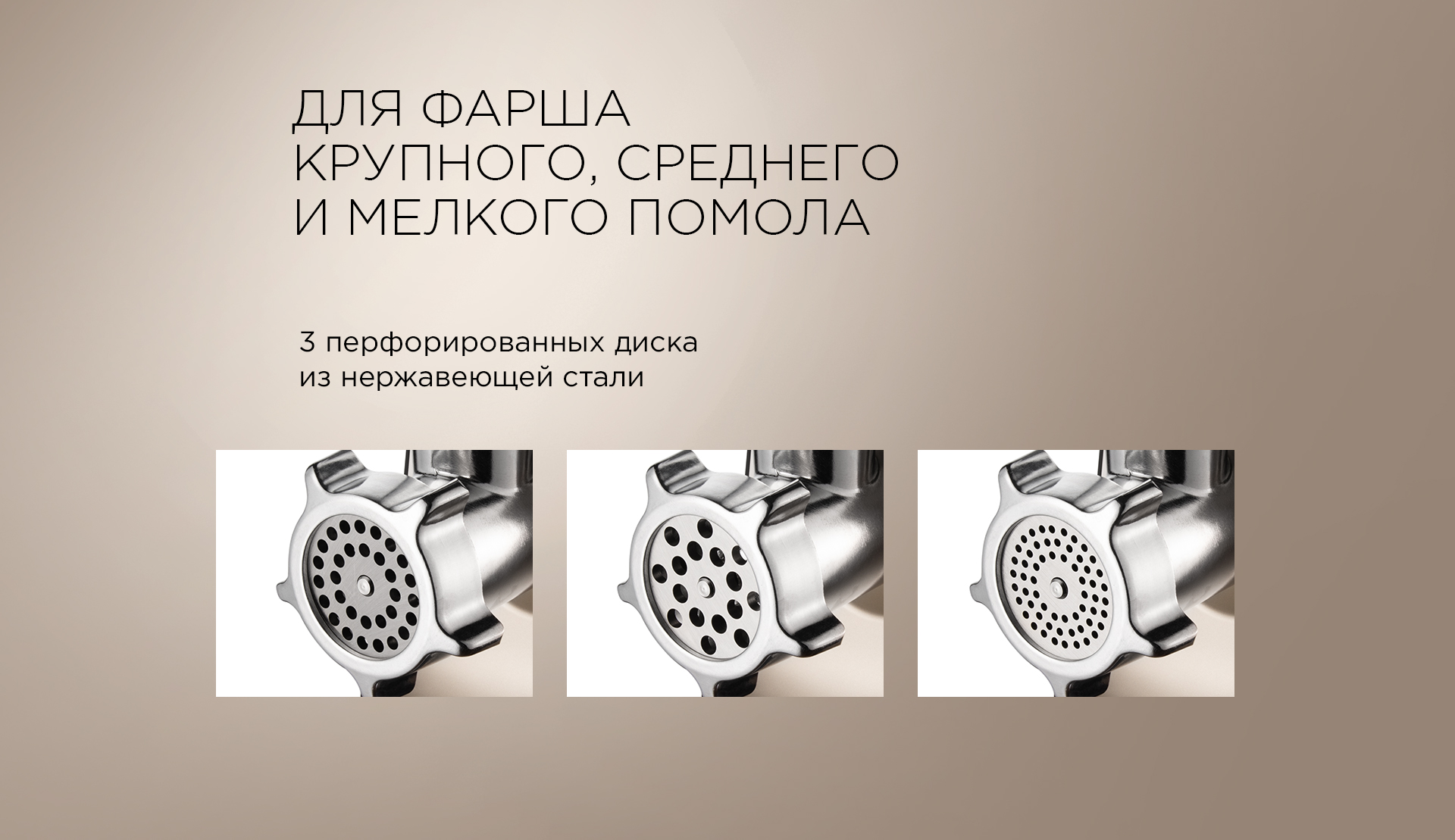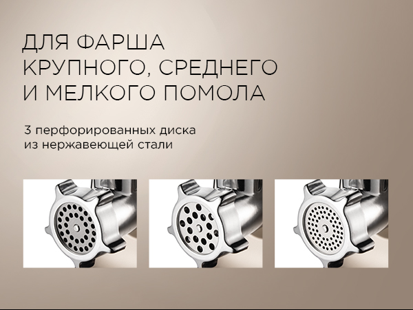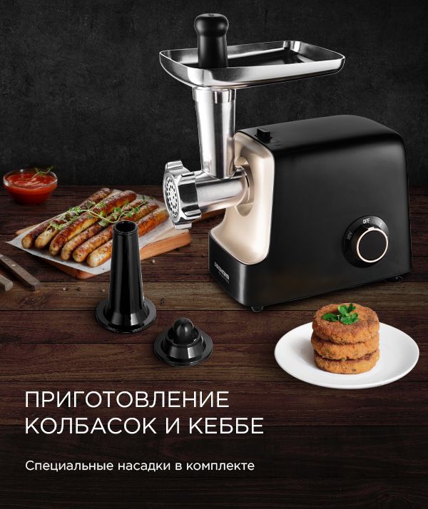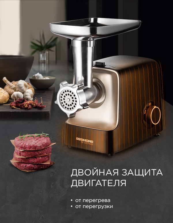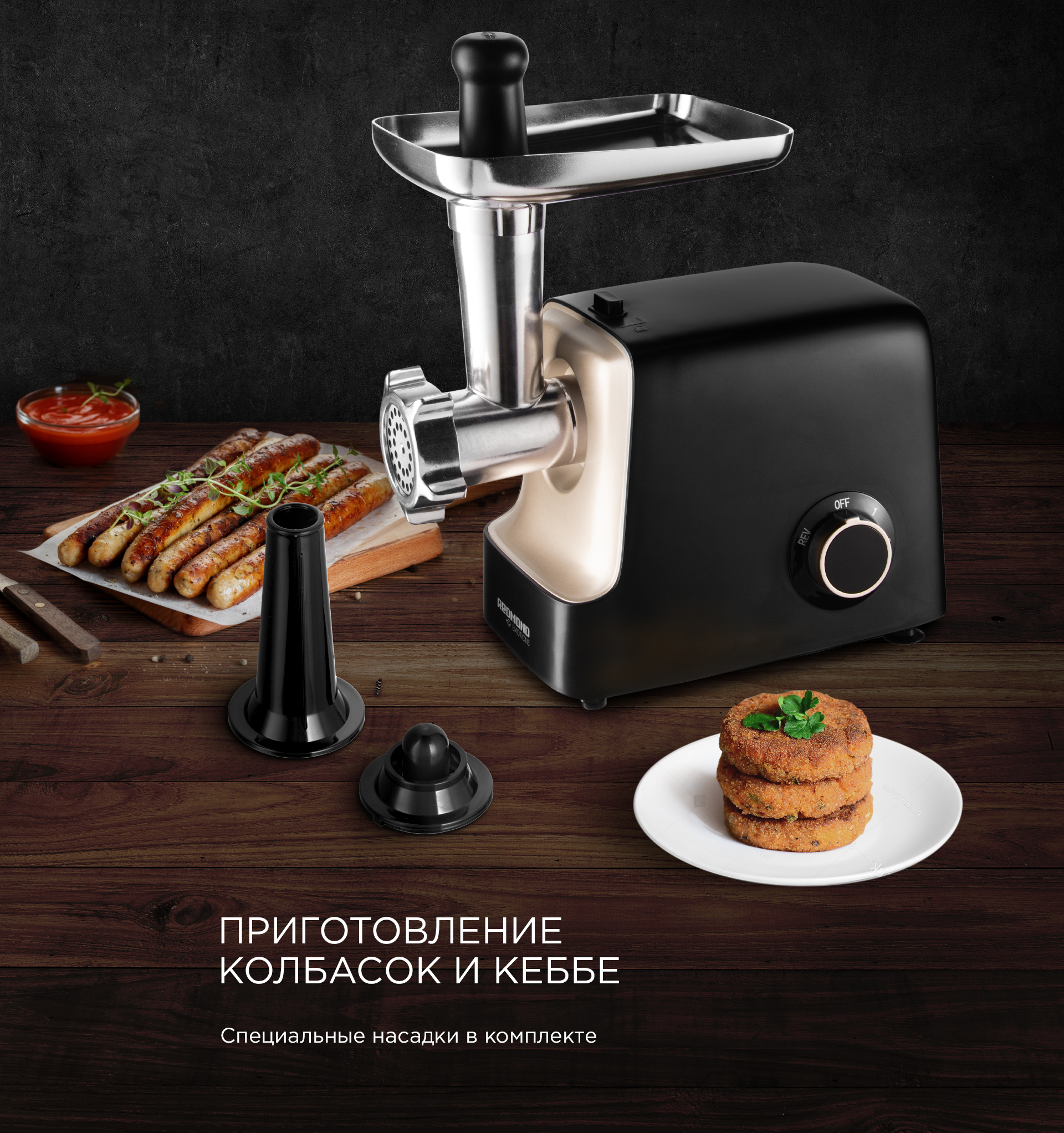 Мясорубка REDMOND RMG-1237 – это мультисистема «3 в 1» для удобного приготовления фарша разного помола и формования натуральных деликатесов: колбасок и восточных кеббе.