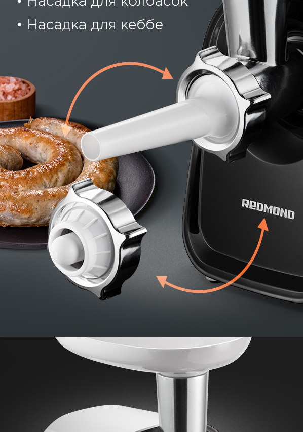 Мясорубка снабжена специальными насадками для колбасок и сарделек, а также для традиционного арабского блюда кеббе — полых колбасок с начинкой из сыра, овощей, зелени и круп.