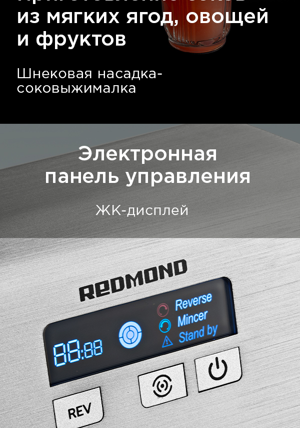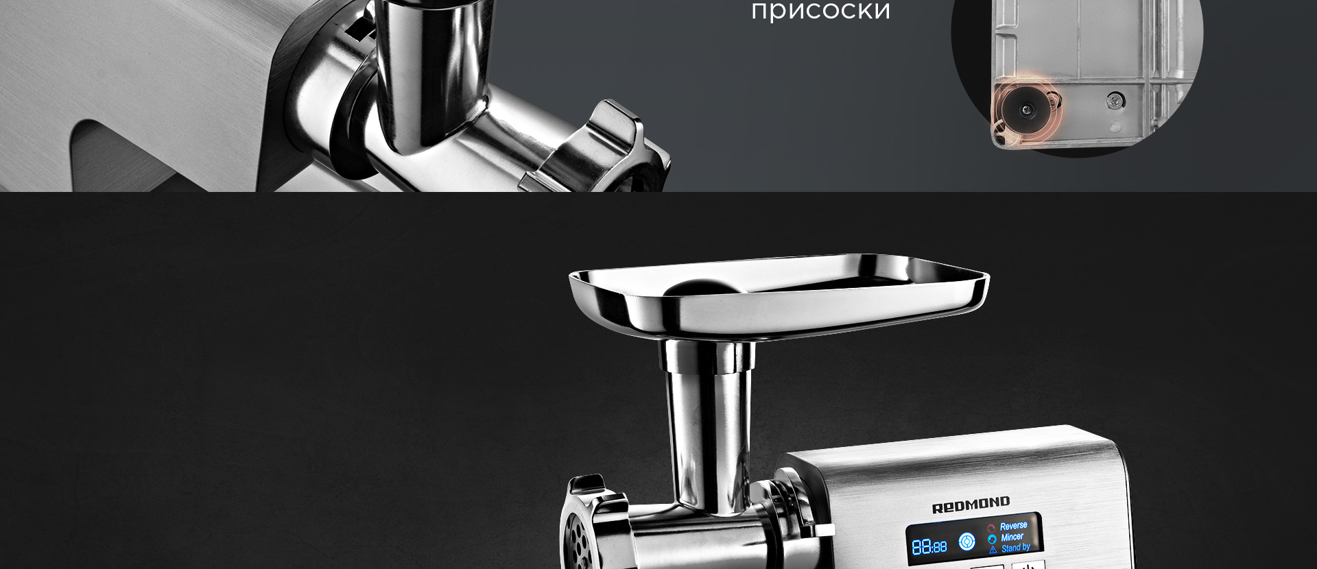 Ножки с присосками обеспечивают максимальную устойчивость прибора даже во время интенсивной работы.REDMOND – готовь по своим правилам!