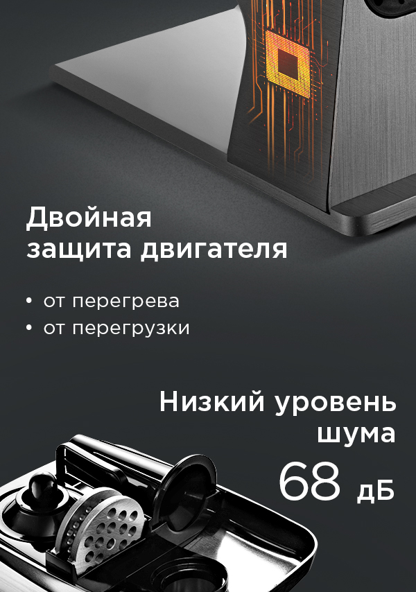 После поломки старой мясорубки, при выборе акцентировали внимание на защитах. Ту их 2!!! Мало того, что от перегрева, так еще и от перегрузки, которая убила старую мясорубку. Берите!