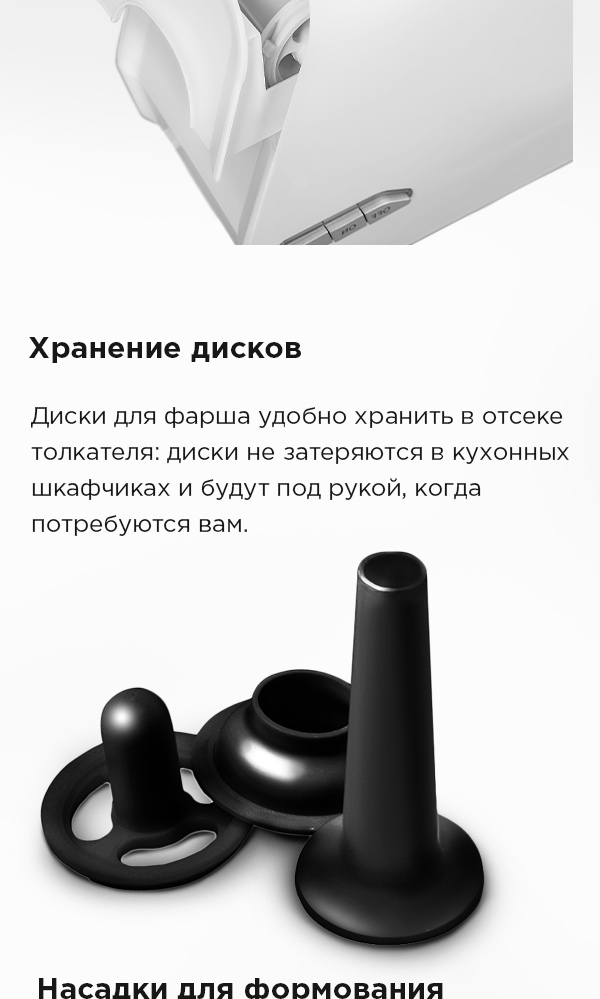 Мясорубка REDMOND RMG-1217 – ультракомпактная, мощная и высокопроизводительная новинка с практичным отсеком для хранения перфорированных дисков. Эта универсальная модель с мультисистемой «3 в 1» предоставит возможность делать своими руками различные виды фарша, натуральные кеббе и настоящие домашние колбаски, а стильная обтекаемая форма прибора удивит даже самого искушённого кулинара.