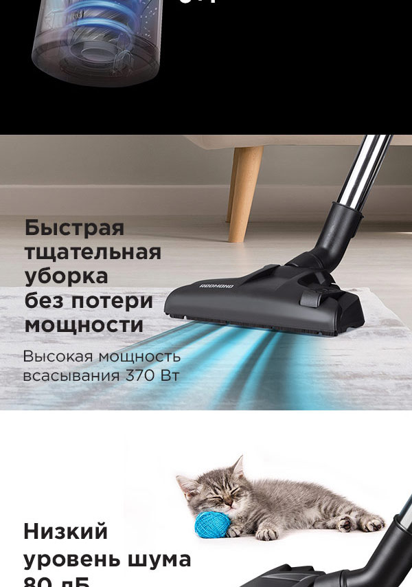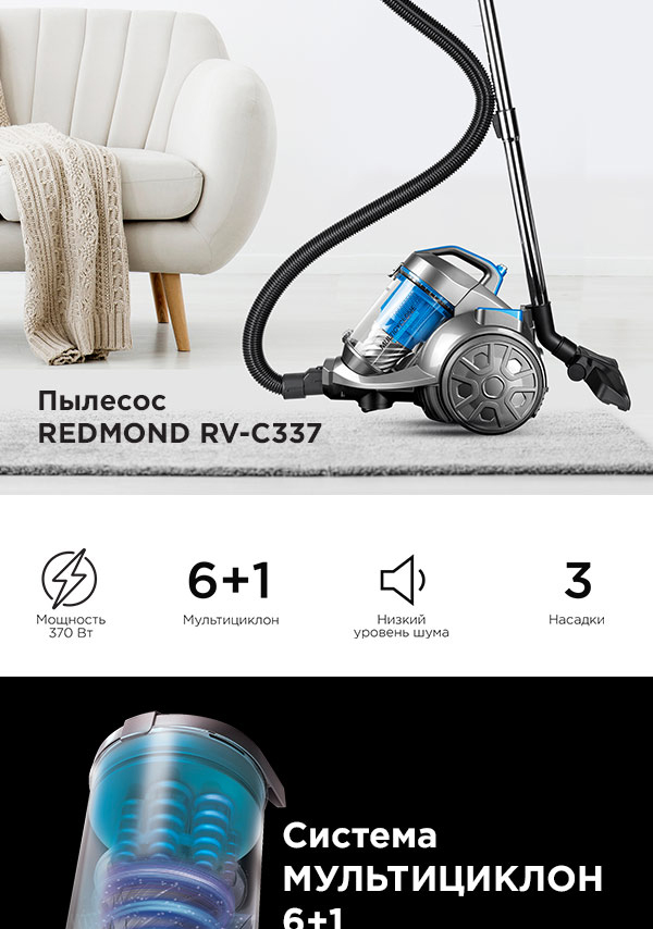 RV-C337 – это компактный и мощный пылесос с циклонической системой фильтрации.