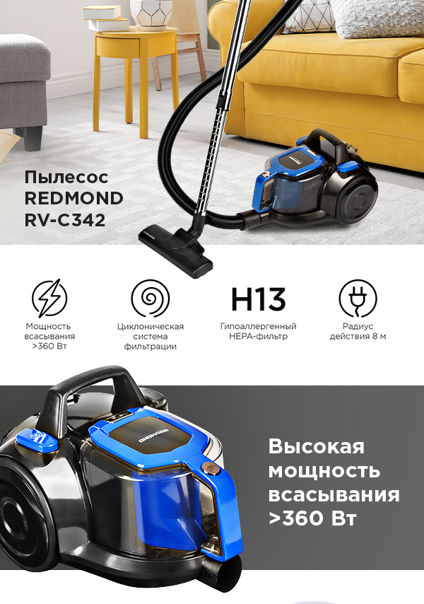 Пылесос REDMOND RV-C342 - фото - купить в интернет-магазине Редмонд