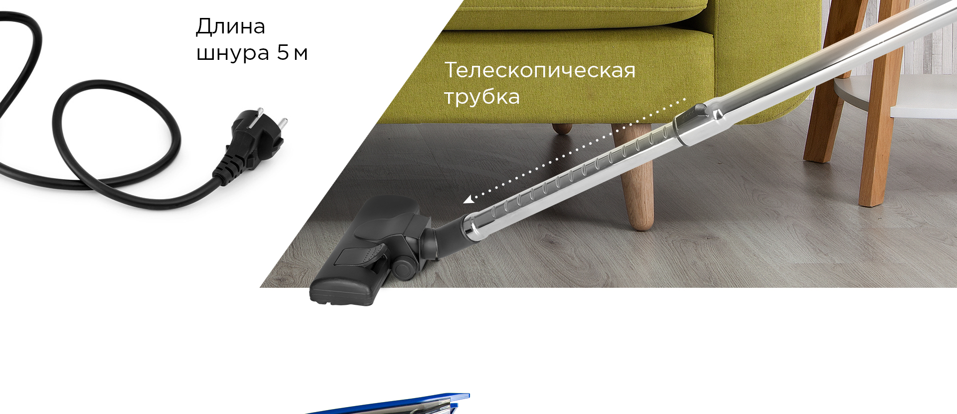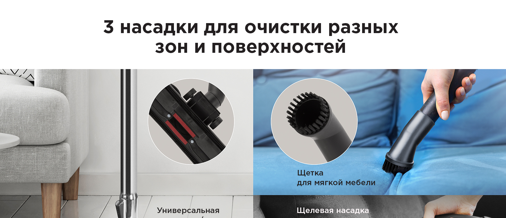 • щелевая насадка предназначена для очистки труднодоступных мест, щелей между мебелью и техникой, поверхности вдоль плинтусов;