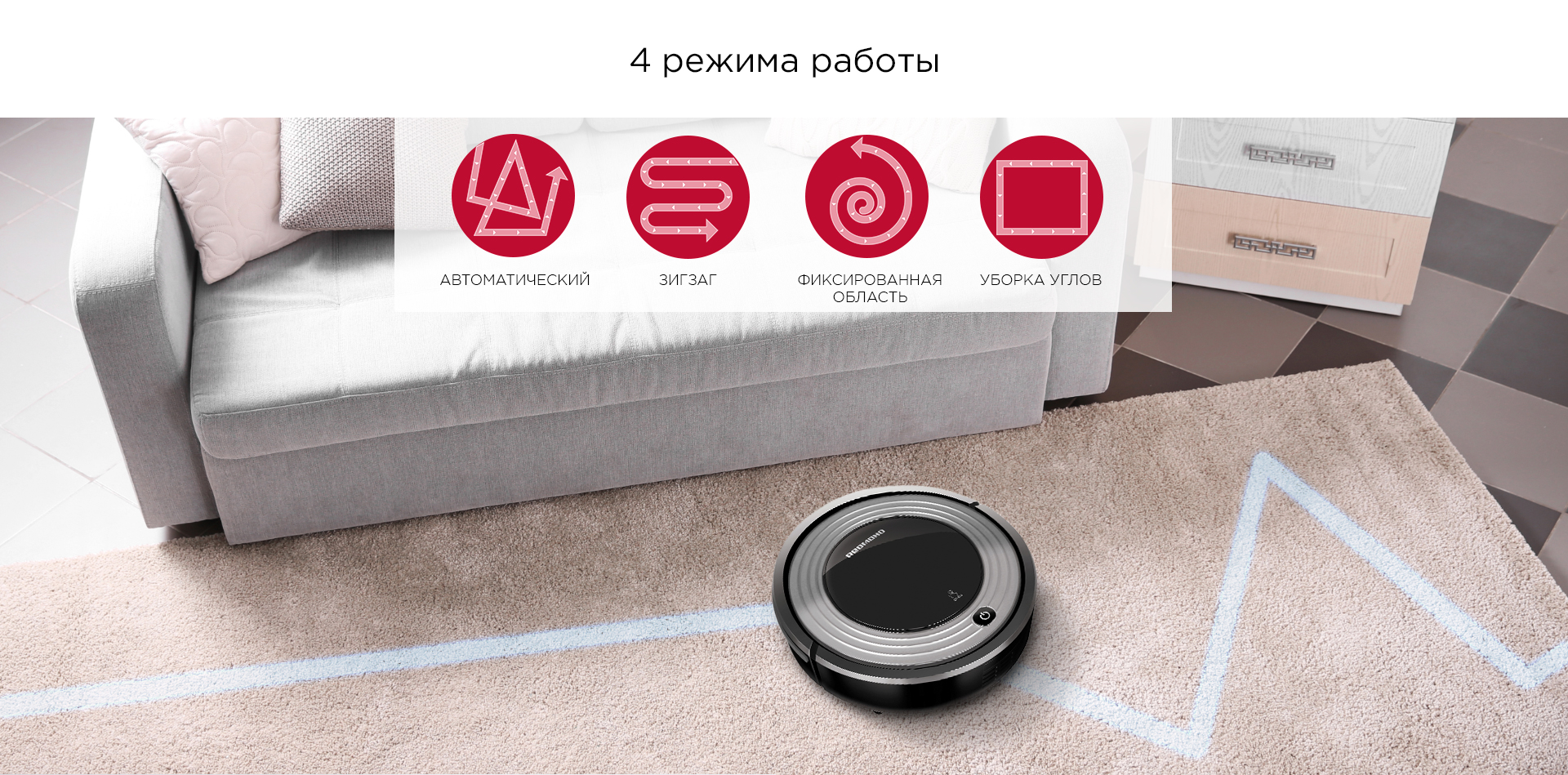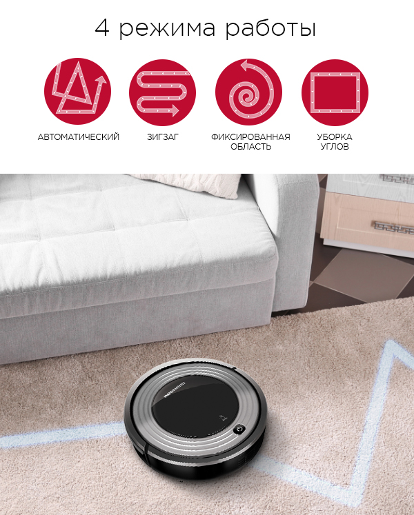Робот-пылесос может работать в 4 режимах: