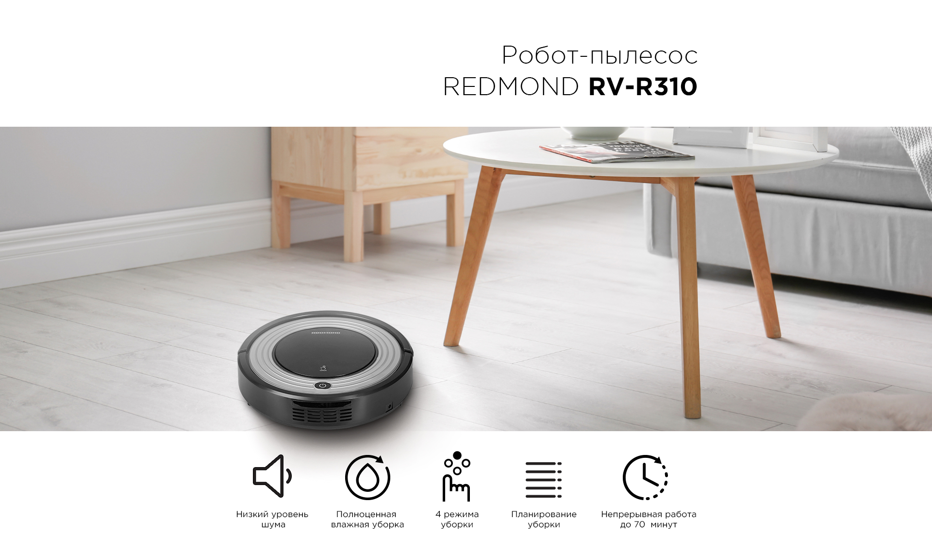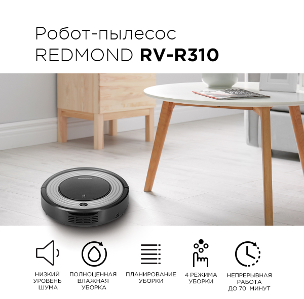С инновационным роботом-пылесосом REDMOND RV-R310 вам не придется тратить время на ежедневную уборку. Поддерживать чистоту в доме сможет RV-R310 с надежным механизмом, широким функционалом и простым управлением.