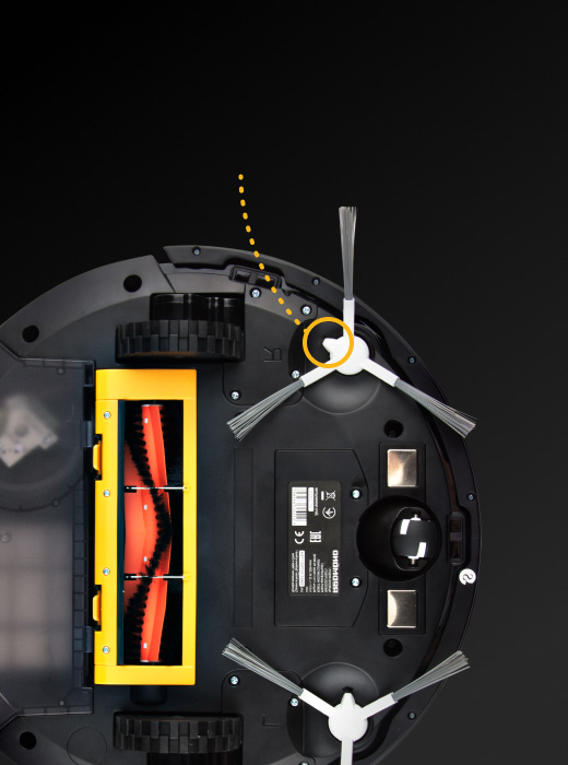 Две боковые щетки с защитой против блокировки от наматывания ниток и шерсти выметут сор из углов и вдоль стен
