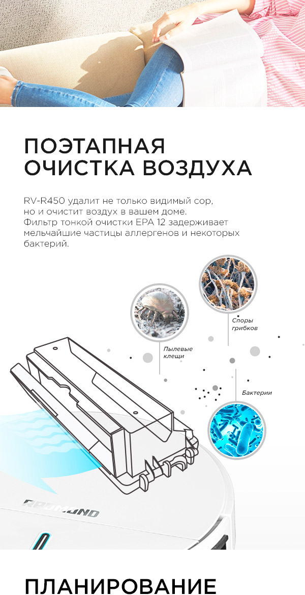 RV-R450 удалит не только видимый сор, но и очистит воздух в вашем доме. Выпускной микрофильтр задерживает мельчайшие частицы пыли и некоторые бактерии.
