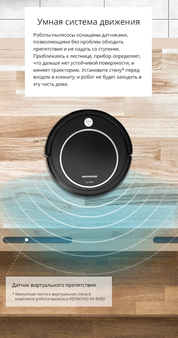 Робот-пылесос REDMOND RV-R400 – новейшая революционная высокотехнологичная разработка с уникальными инновационными возможностями, поражающими сознание человека. Это ваш собственный самый ответственный помощник по дому.