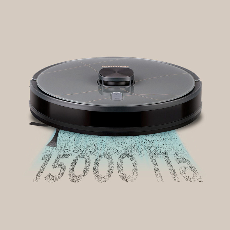 Забудьте о компромиссах. Мощная система очистки Clean Force с максимальной силой всасывания 15 000 Па обеспечивает идеальный результат уборки. Робот легко справляется с самыми сложными загрязнениями: собирает забившийся в ковер песок, шерсть, волосы и рассыпанные крупы. А на твердых покрытиях не остается даже мелкой пыли.