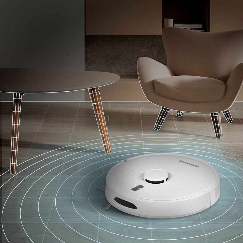 Лазерный лидар сканирует пространство и составляет полноценную карту комнаты. Если вам нужно убрать только ее часть, вы можете установить запретную зону в приложении. Также пылесос оснащен 13 датчиками, которые точно распознают препятствия.