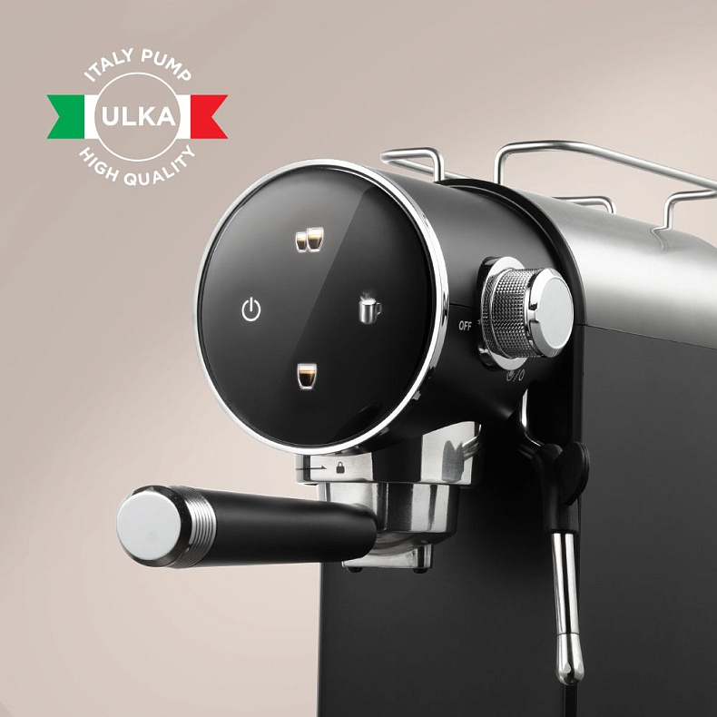 Помпа ULKA создает давление 15 бар — уровень, сравнимый с профессиональными кофемашинами. Горячая вода под высоким давлением проходит через кофе, раскрывая его вкус и аромат. Наслаждайтесь насыщенными и сбалансированными напитками каждый день.