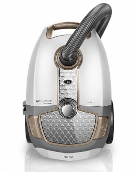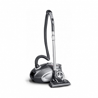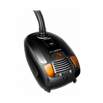 Мощный пылесос с мешком для сбора пыли имеет ударопрочный корпус из пластика. Для удобного передвижения в корпусе есть колесики. Также в нем сделано отверстие для вентиляции, чтобы не перегревался двигатель. Средняя мощность всасывания аппарата составляет 360 Вт.