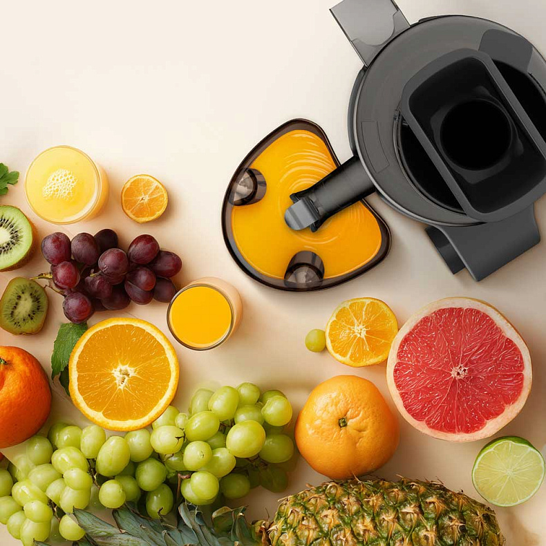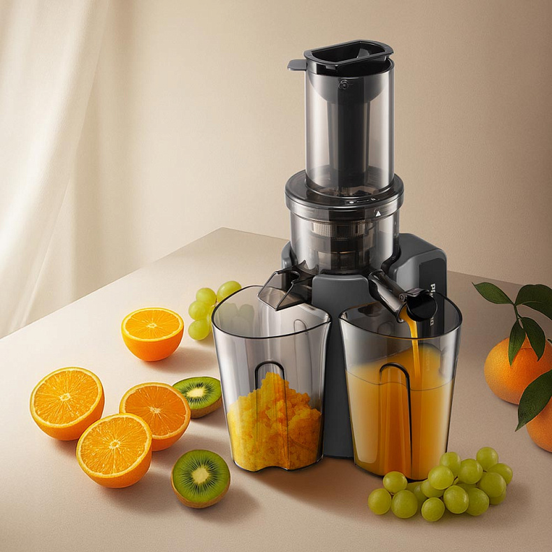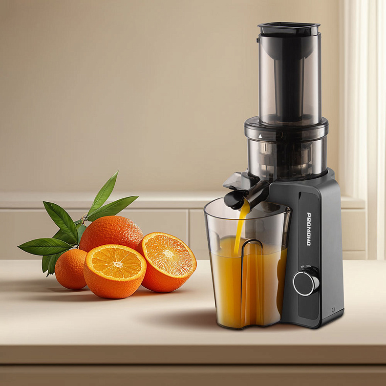Модель подходит для отжима не только фруктов, но и твердых овощей — моркови, свеклы или редьки. Идеально для тех, кто следит за здоровым питанием и любит свежий сок без добавок и консервантов.