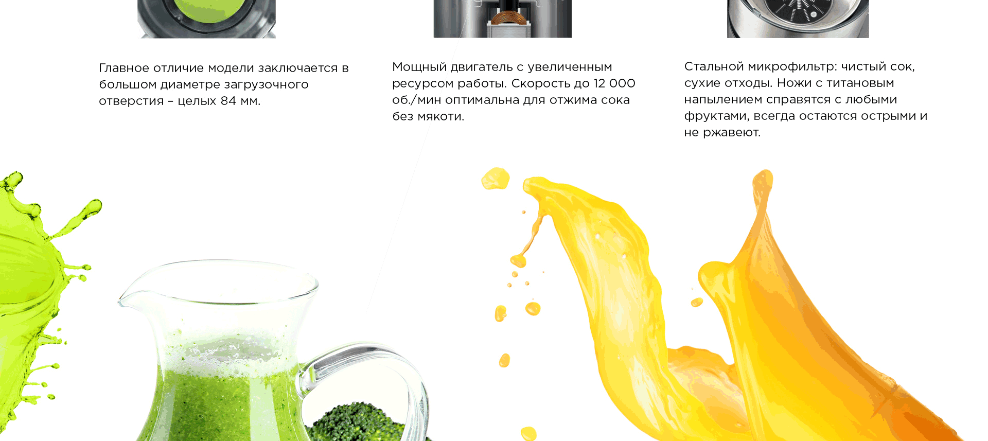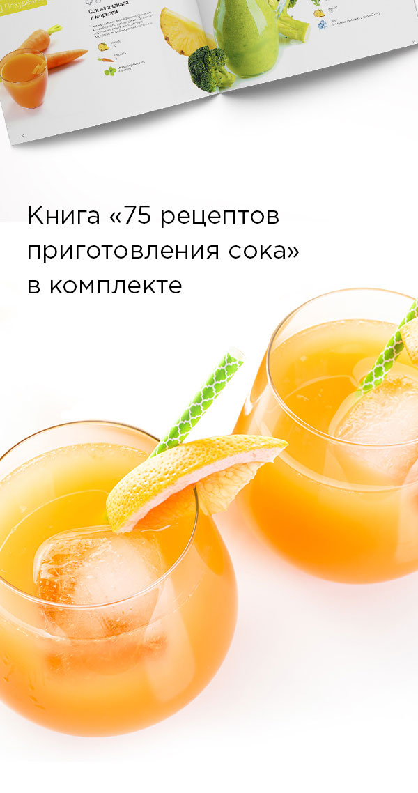 Она прекрасно справляется с любыми фруктами и овощами, даже с твердыми морковью и яблоками. Сок получается густой и насыщенный, без мякоти. Удобная в использовании, легко разбирается и моется. Благодаря широкой горловине, можно использовать целые фрукты