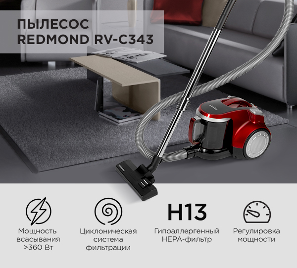 Пылесос REDMOND RV-C343 - фото - купить в интернет-магазине Редмонд