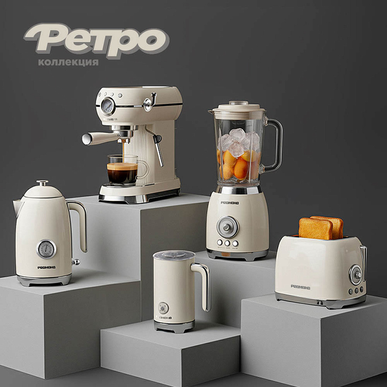 Техника с винтажным дизайном и современным функционалом станет изюминкой кухонного интерьера. Блендер BS413, чайник KM247, тостер T909, кофеварка CM722 и капучинатор MF5002 помогут превратить завтрак в завораживающий утренний ритуал. Наслаждайтесь каждой минутой, пока техника выполняет работу за вас.