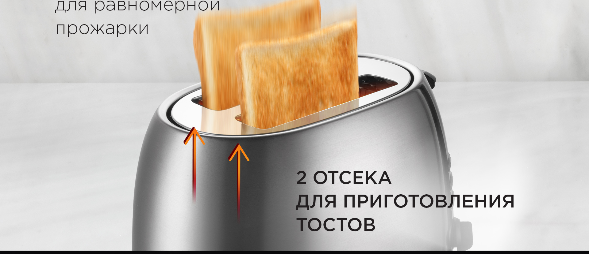 Тостер достойный. Выполнен качественно. Когда покупал не думал что буду пользоваться чуть ли не каждый день. Огромный плюс, что корпус из нержавеющей стали, а не из пластика. Сам корпус не греется. Покупкой в целом доволен.