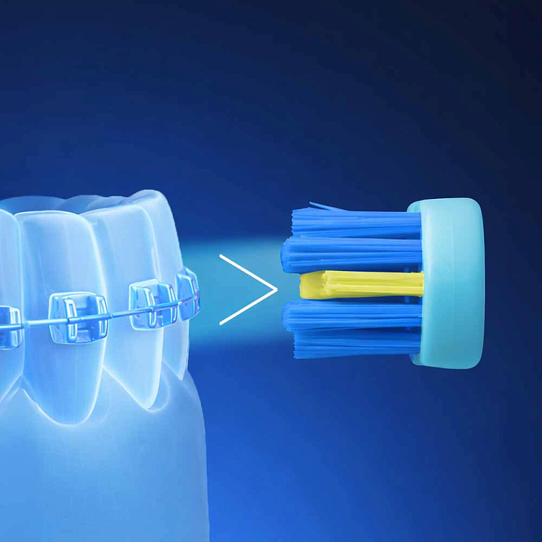 Компактная головка обеспечивает необходимую маневренность для точной работы в условиях ограниченного пространства. С ее помощью легко чистить дальние зубы и труднодоступные участки вокруг конструкций. Съемный прозрачный колпачок защищает щетину от пыли и повреждений, поддерживая гигиену и позволяя брать щетку с собой в дорогу.