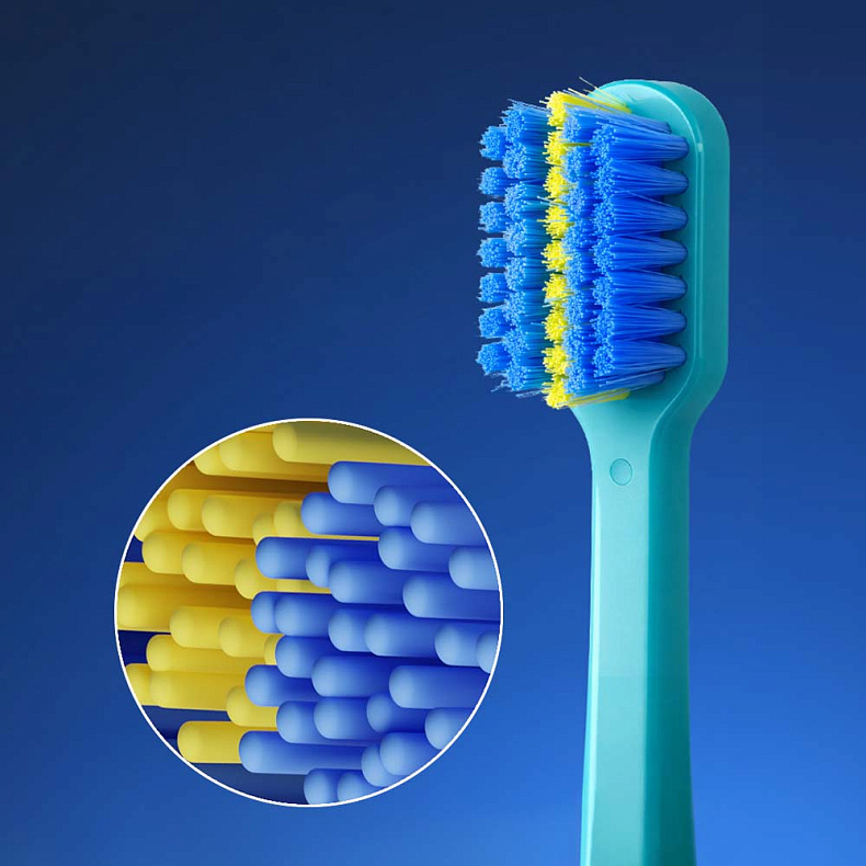 Толщина каждой щетинки составляет всего 0,12 мм. Благодаря эластичности они проникают в микрозазоры между зубами, под дугу и вокруг креплений брекетов — зоны повышенного риска скопления бактерий. Мягкие закругленные кончики предотвращают травмирование слизистой и бережно полируют эмаль, обеспечивая комфорт и дополнительную защиту от кариеса.