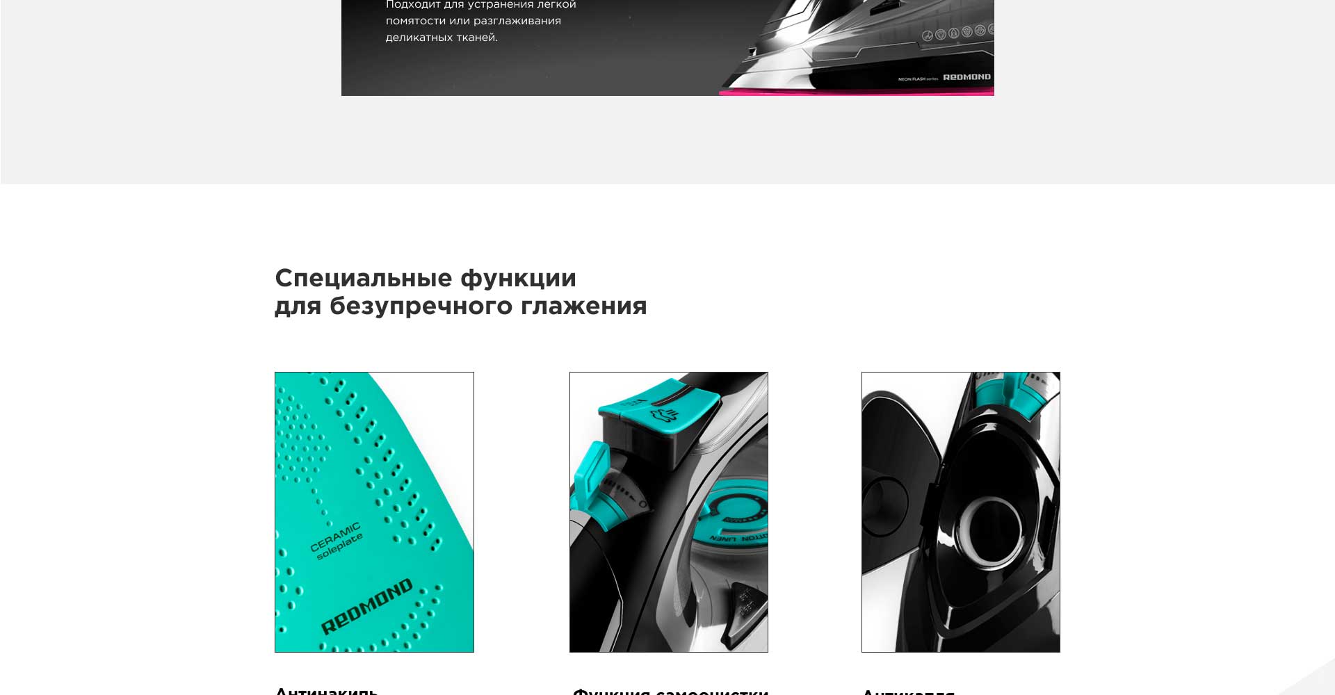 Утюг REDMOND RI-C252 – универсальная надежная модель с простым управлением и широким набором функций, выполненная в ярком футуристичном дизайне.