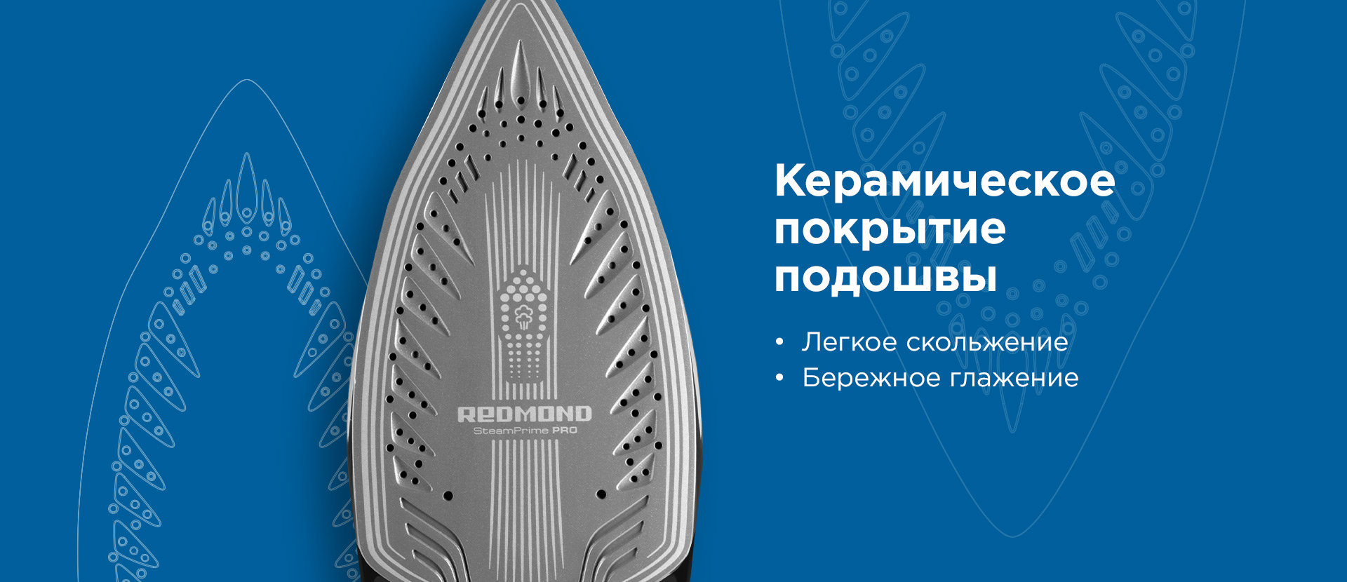 Подошва утюга имеет керамическое покрытие, которое легко скользит и отлично разглаживает любую ткань. Керамика равномерно распределяет тепло и обладает высокими антипригарными свойствами.