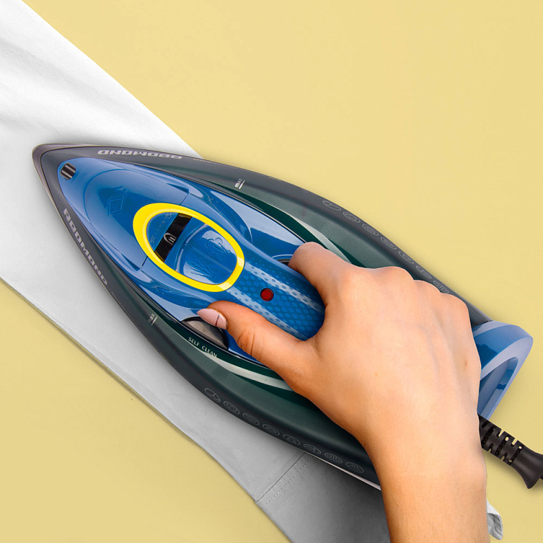 Функция самоочистки утюга позволяет избавиться от накипи в соплах подошвы и значительно продлевает срок эксплуатации прибора.
