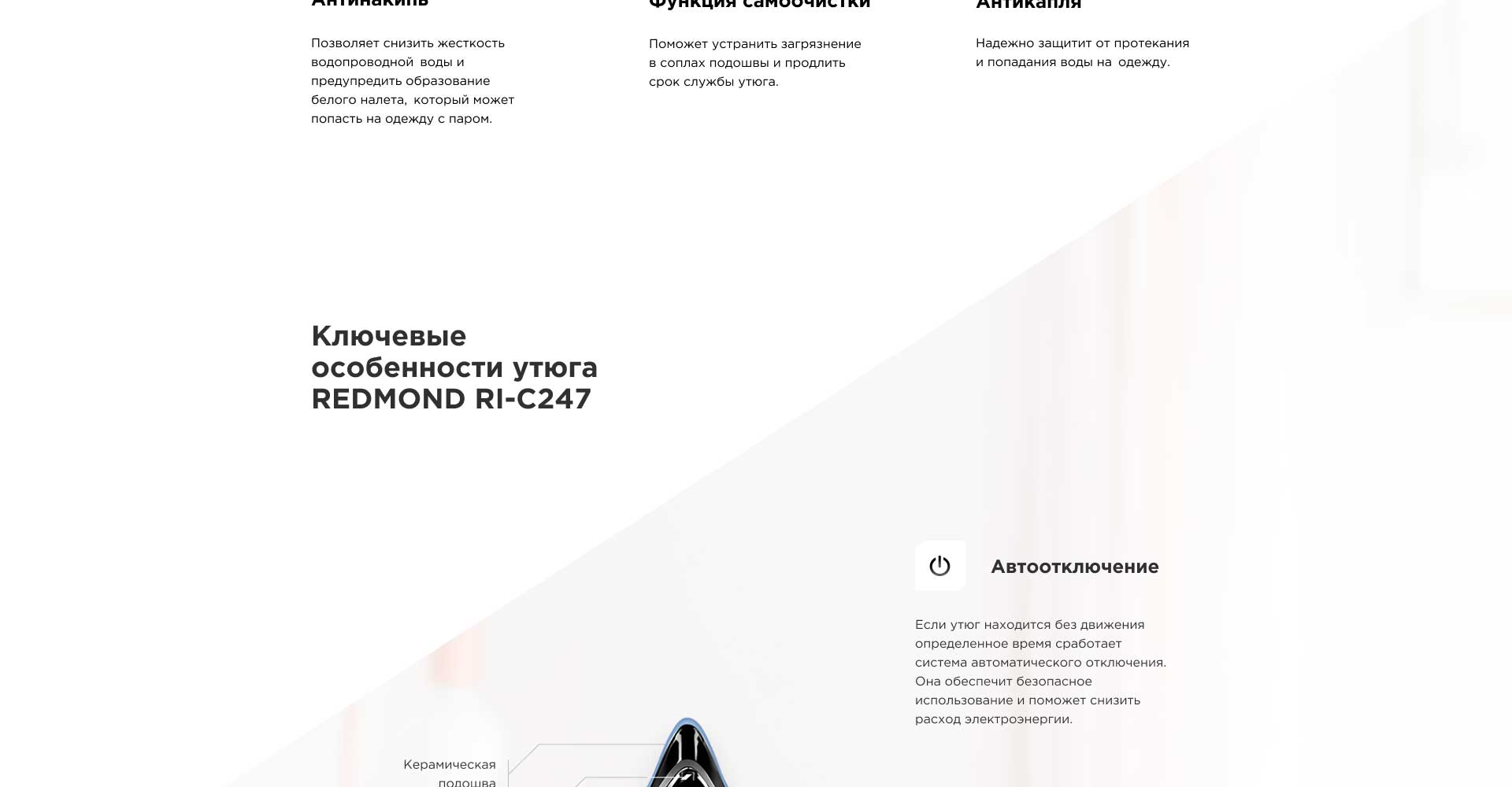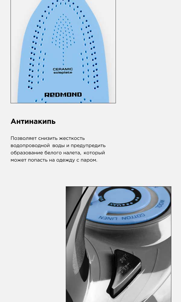 C утюгом REDMOND RI-C247 рутинное глажение становится комфортным и безопасным процессом.