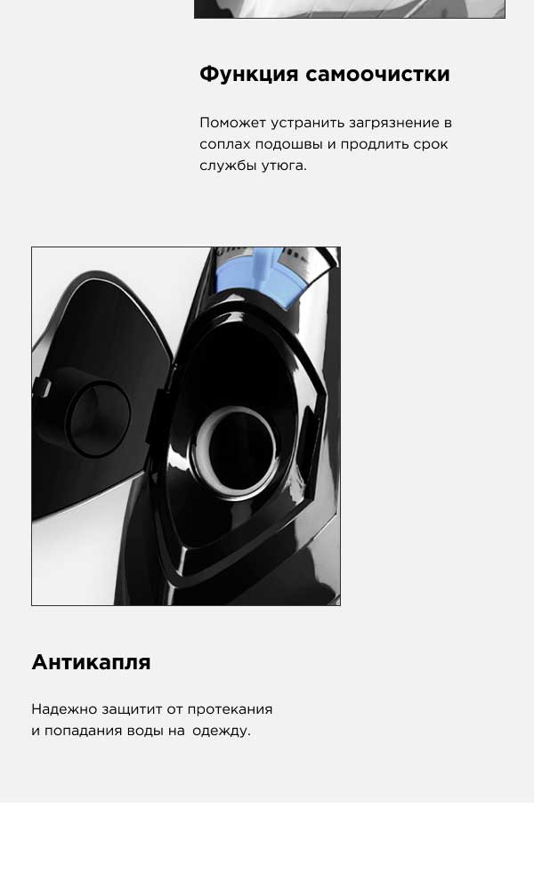 Включили режим сухого глажения и боитесь, что из отверстий в подошве будет вытекать вода, которая осталась в резервуаре утюга? Встроенная опция «Антикапля» предотвратит случайное протекание и поможет избежать появления разводов на ткани.