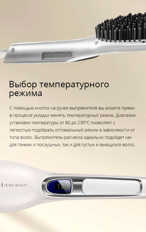 Есть регулировка температуры в отличии от большинства похожих моделей, выпрямляет волосы не хуже классического выпрямителя, но благодаря отсутствию металла, не жгет волосы.