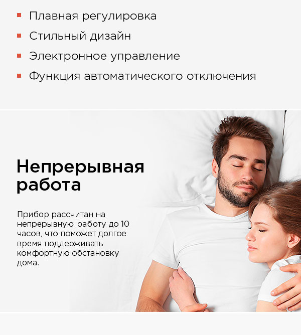 Смело включайте увлажнитель ночью или уходя из дома! RHF-3307 оснащен системой защиты, которая остановит работу прибора, когда вода в резервуаре закончится.