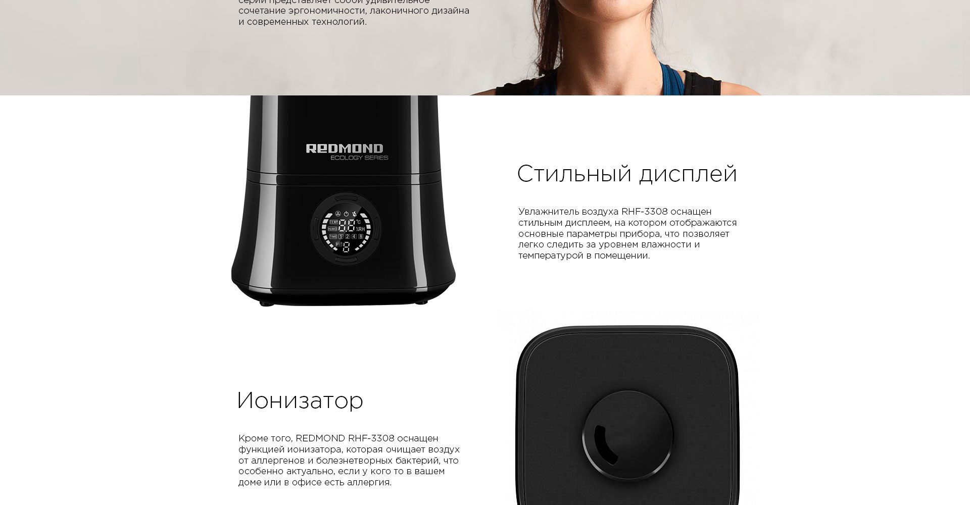 REDMOND RHF-3308 – инновационное устройство «2 в 1», которое совмещает функции увлажнителя воздуха и ионизатора.