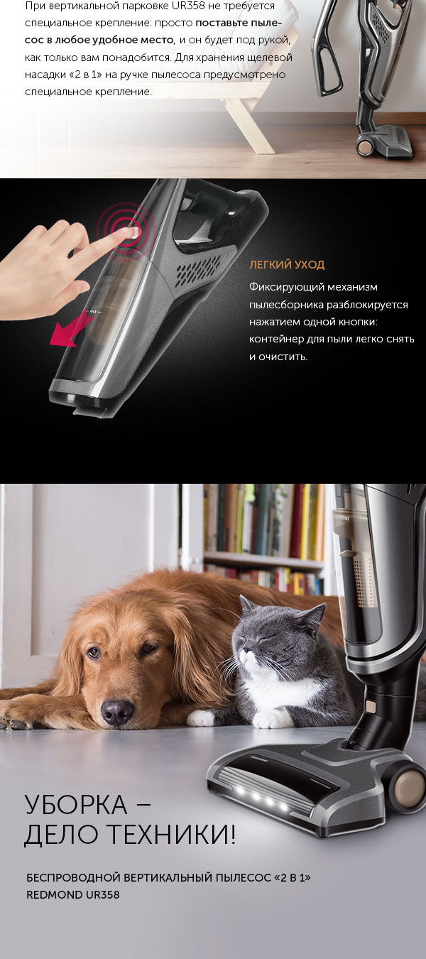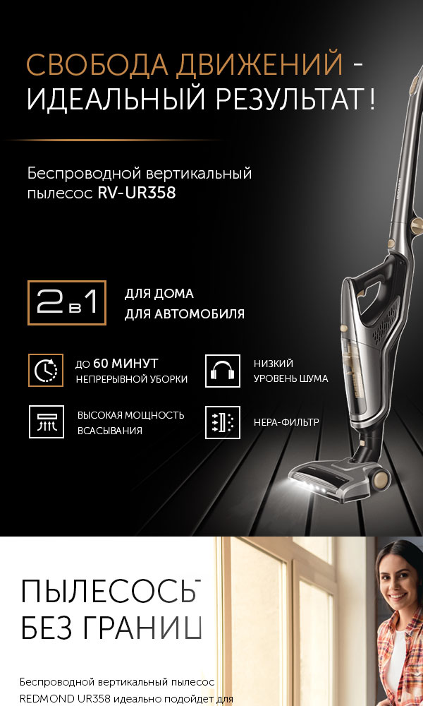 Беспроводной пылесос REDMOND UR358: свобода движения ‒ идеальный результат!