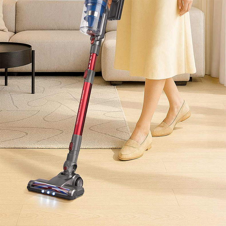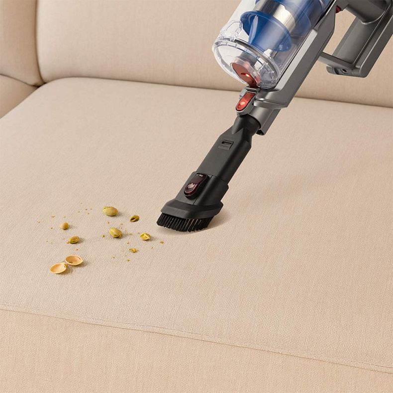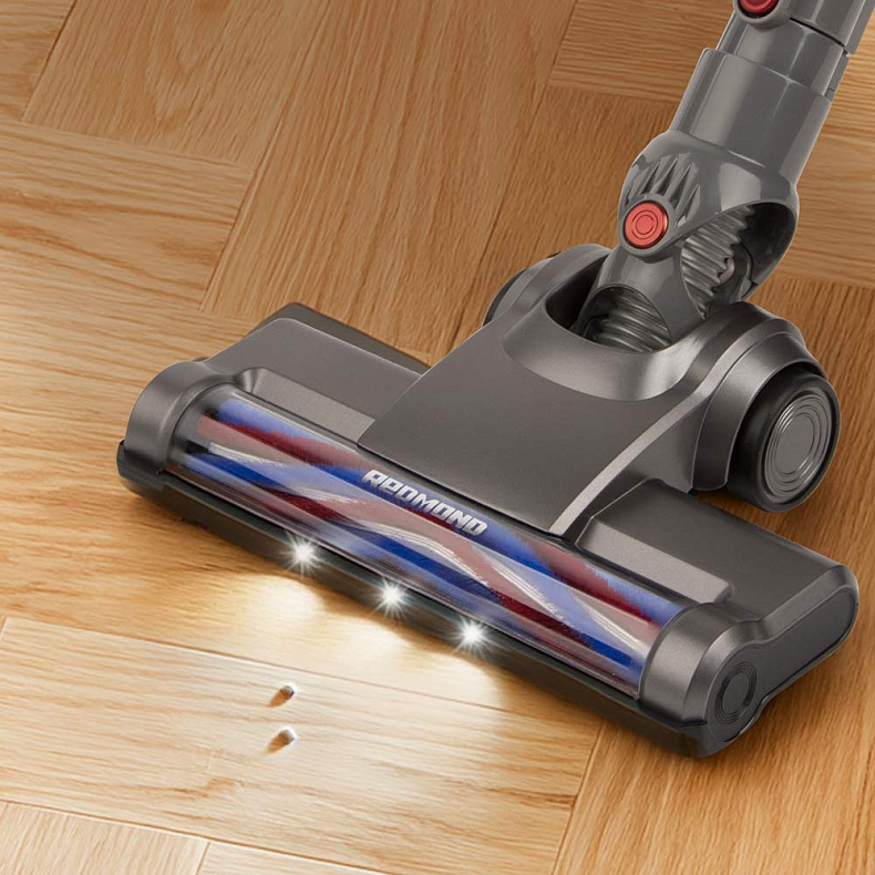 Встроенная подсветка помогает заметить даже мельчайшие частицы мусора в темных зонах: под диваном или кроватью. С пылесосом РЕДМОНД RV-UR361 уборка становится не только эффективной, но и действительно комфортной.