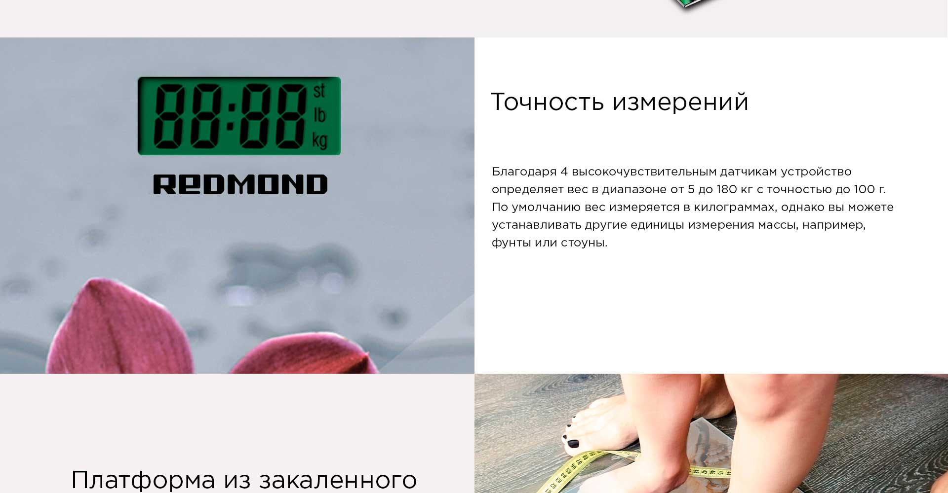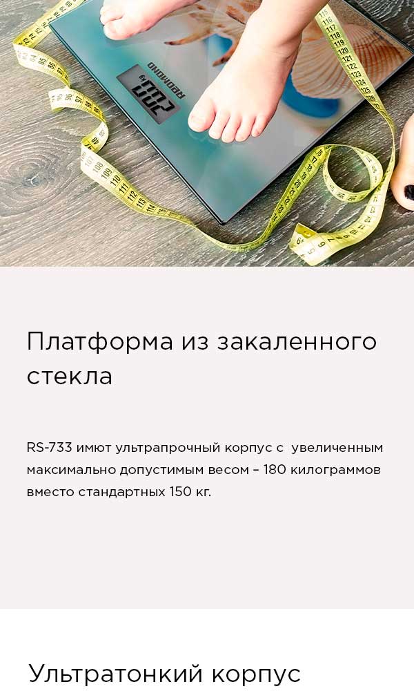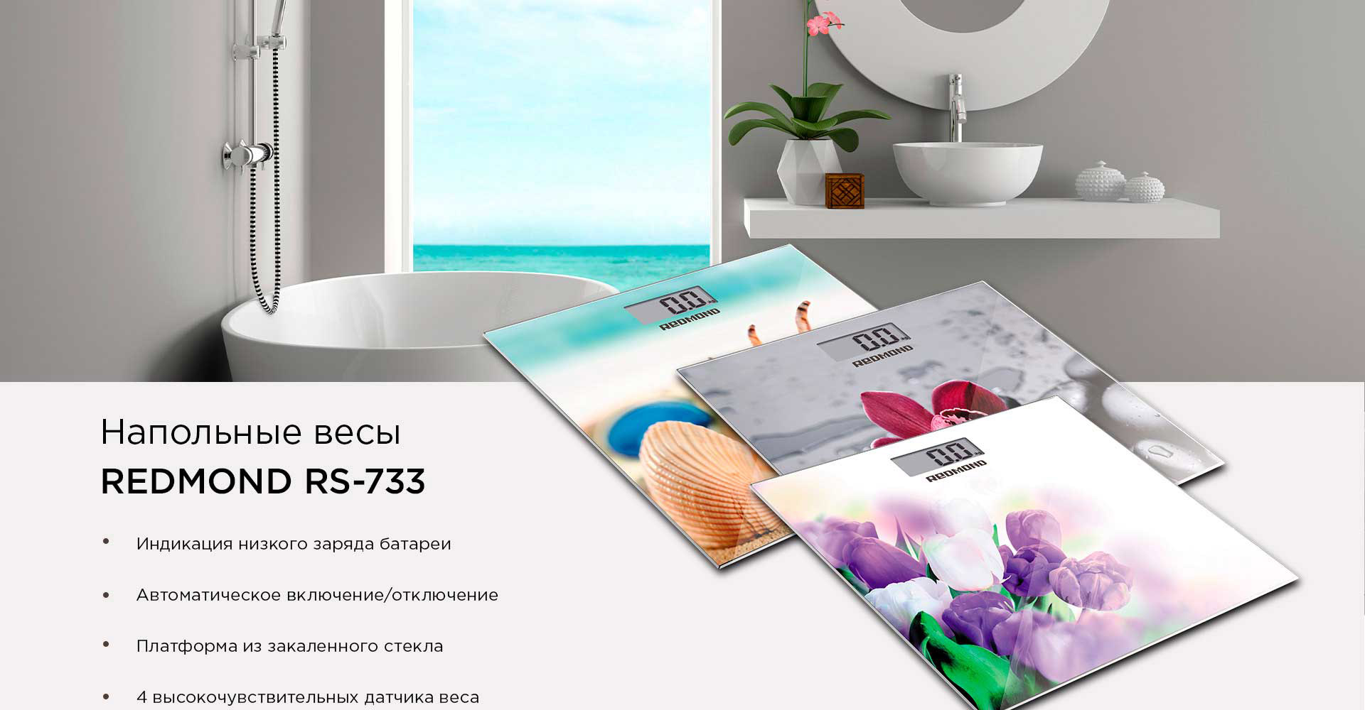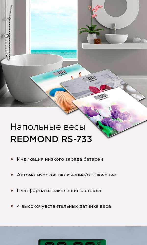 Напольные весы REDMOND RS-733 – новая модель с корпусом из прочного закалённого стекла и большим удобным ЖК-дисплеем.