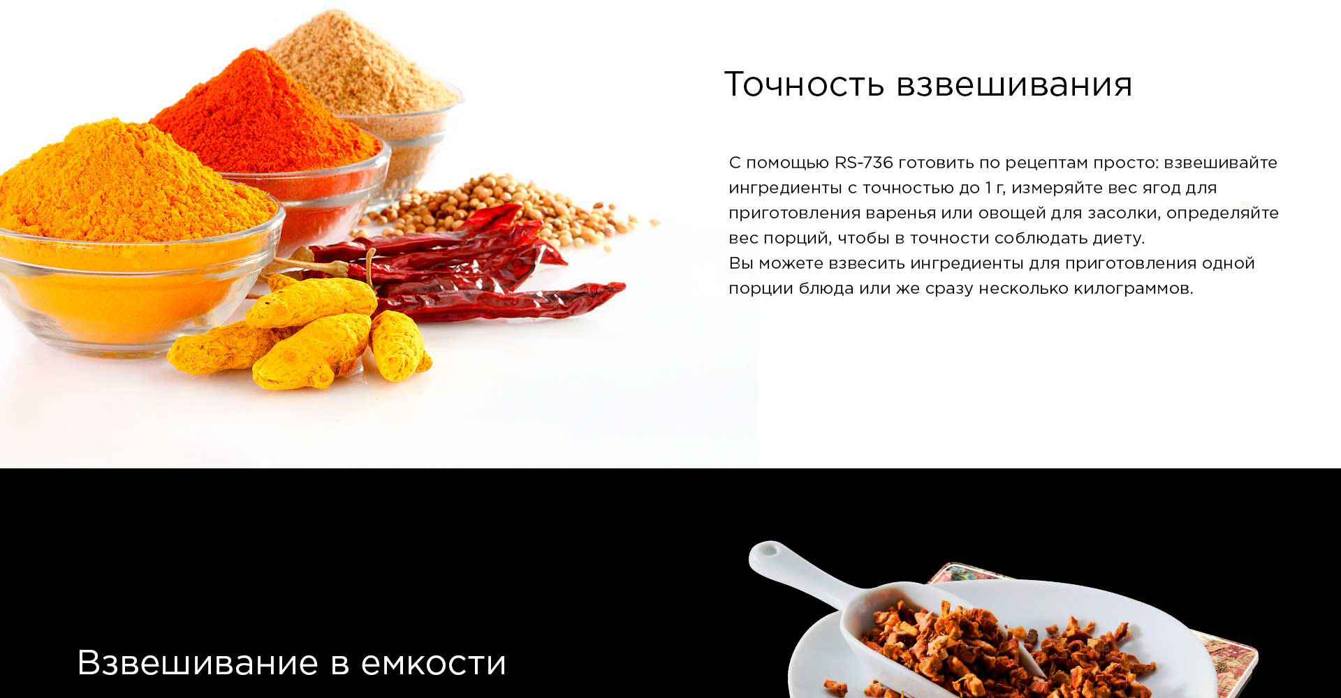 RS-736 легко и быстро определяют вес любого ингредиента блюда с точностью до 1 грамма. Эти стильные кухонные весы станут верным помощником приверженцев правильного питания, спортсменов и поклонников здорового образа жизни.