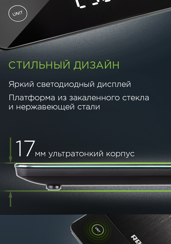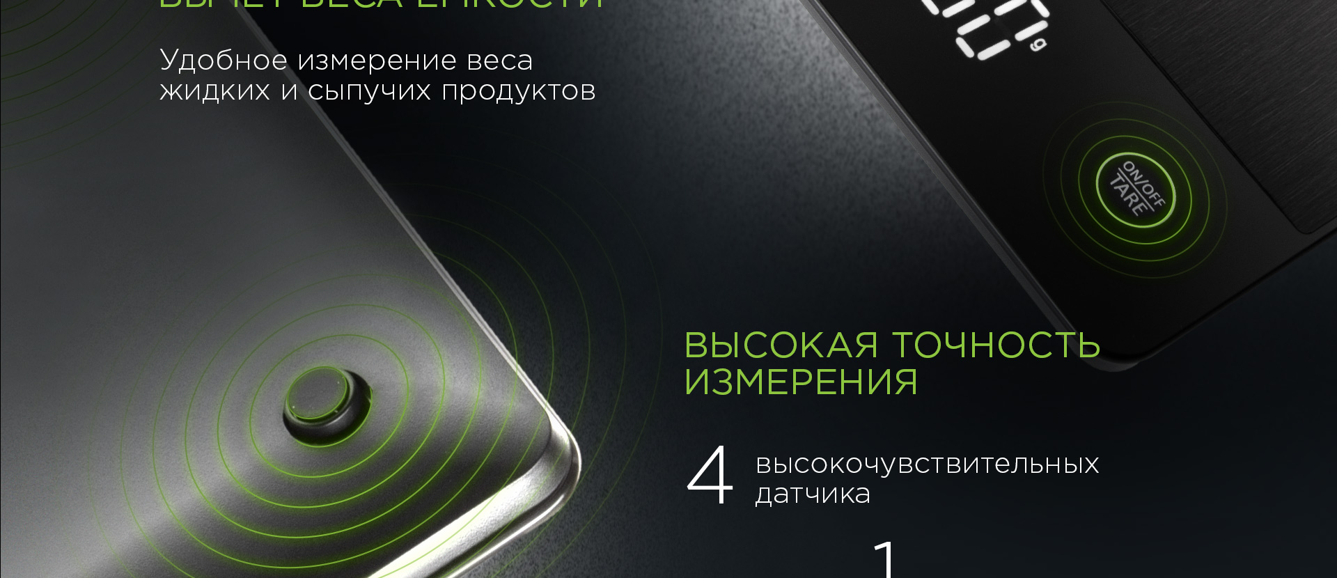 Устройство оснащено 4 высокочувствительными датчиками веса, благодаря чему RS-M765 определяет вес в диапазоне от 3 г до 10 кг с шагом измерения в 1 г.