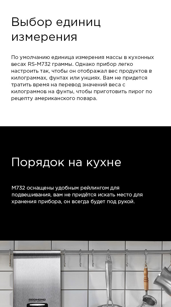 Весы RS-M732 не займут много места на кухне: подвесьте их на рейлинг в удобном для вас месте, и они всегда будут под рукой.