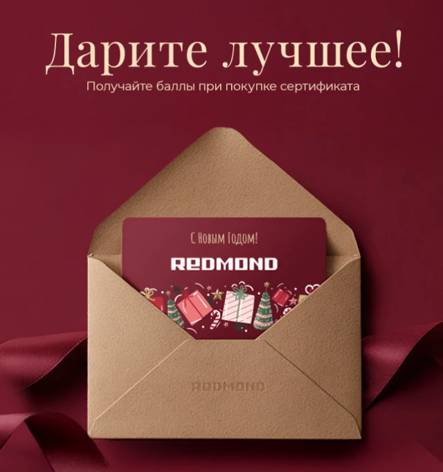 Подарочные карты действуют в интернет-магазине multivarka.pro и сети розничных магазинов REDMOND Smart Home.