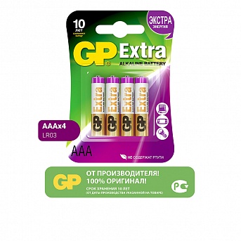 Батарейки алкалиновые (щелочные) GP Extra Alkaline, AAA (LR03), 4 шт