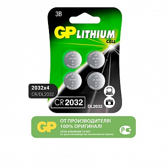 Батарейки дисковые (литиевые) GP Lithium CR2032, 4 шт