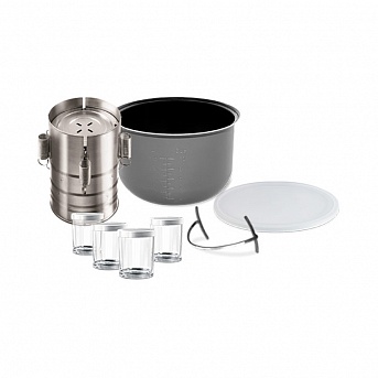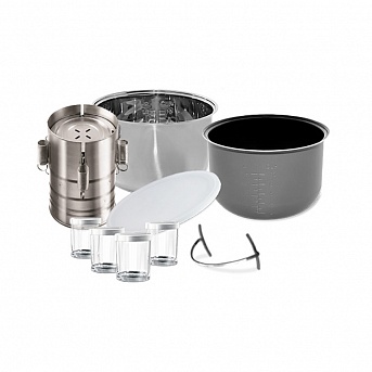 С комплектом аксессуаров «Специалист» вы расширите возможности своей мультиварки. Дополнительная чаша с керамическим покрытием позволит готовить несколько блюд подряд без необходимости перекладывать готовую еду в другую посуду. Пластиковая крышка, входящая в набор, превращает чашу в удобный контейнер для хранения пищи в холодильнике. Щипцы для извлечения чаши обеспечат безопасность ваших рук от горячего пара, а благодаря прорезиненным вставкам они не поцарапают внешние стенки емкости. С ветчинницей на вашем столе всегда будут домашние мясные и рыбные деликатесы. Использовать девайс можно не только в мультиварке, но и в других приборах, и даже – в обычной кастрюле. В баночках для приготовления йогурта удобно изготавливать и хранить полезный кисломолочный продукт: крышки емкостей имеют специальный маркер, с помощью которого удобно устанавливать дату производства йогурта.